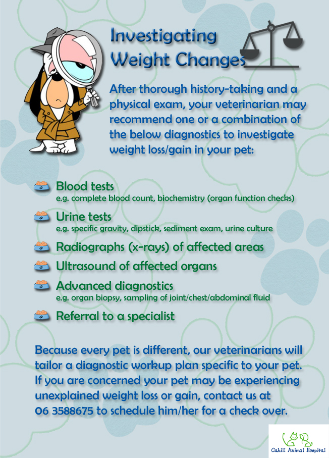 Any unexpected weight changes, be it a loss or gain, should be of concern. Find out more about unexpected weight changes by clicking on the images below.